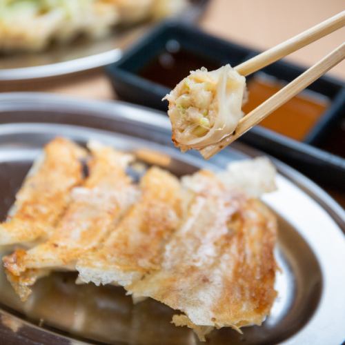 香り高い特製の皮に厳選した食感のよい豚肉を使った餡を手包み。肉汁が飛び出るほどジューシーな焼餃子